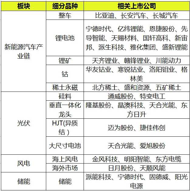 3.CS新能车指数(399976)CS新能车指数从沪深两市中选取涉及锂电池、充电桩、新能源整车等业务的上市公司作为样本。该指数成分股41只。跟踪该指数的基金主要有华夏中证新能源汽车ETF(515030)、国泰中证新能源汽车ETF(159806)、博时新能源汽车ETF(159824)。该指数有两只场外基金跟踪,方便没有券商账户的小伙伴购买,即,国泰中证新能源汽车ETF链接A和C。这里需要简单说明的是,新能源车相当于新能源板块的一个类别。单纯新能源车指数中一般没有隆基股份、阳光电源,它们属于新能源板块,但严格来说并不属于新能源车产业链上的公司。