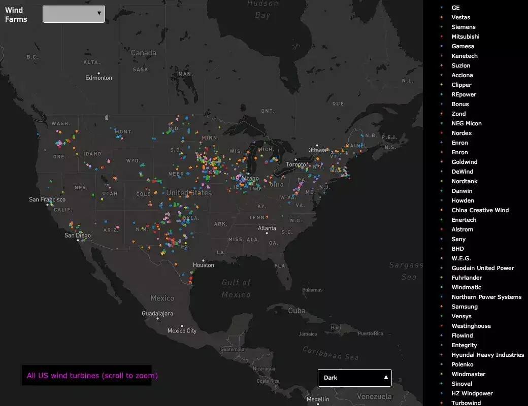 美国风力发电厂的分布情况